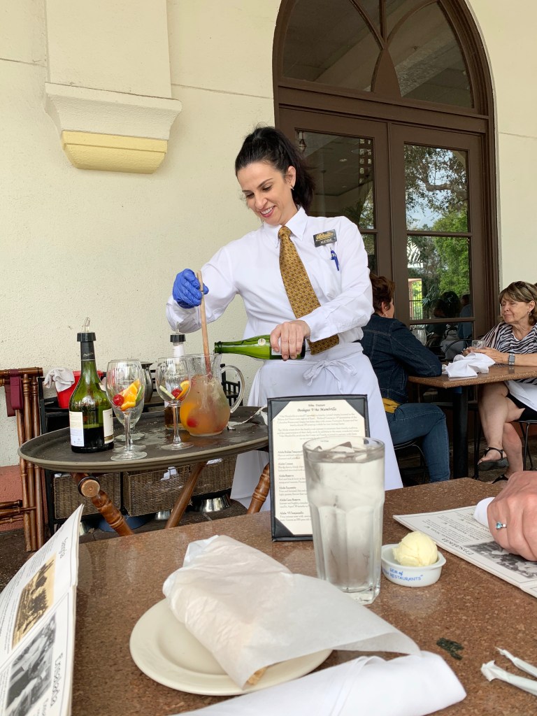 Kim had a day off from volunteering, so we decided to meet up. We had a blast this afternoon enjoying Cava Sangria made table side, some Pinot Grigio, gazpacho, marinated white asparagus, 1905 house salad & a chicken entree with saffron rice. The girls even surprised me with presents !! Delicious Mickey coffee, my favorite patchouli oil, and coconut body polish. Thanks so much !!!!