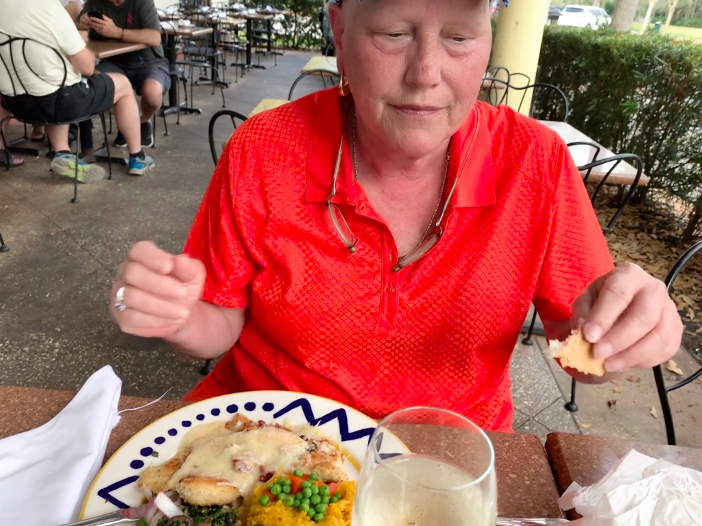 My ex-coworkers will be pleased to read this blog … Today was a special day !! I drove to my favorite restaurant Columbia in my favorite town Celebration to meet up with some of my favorite retiree friends … Kim & Michele !! Yes, you heard me … Michele is in Florida visiting Kim for 10 days ! Since Kim & Michele are both PGA enthusiasts, Michele is thoroughly enjoying hanging out with Kim as Kim volunteers at the Arnold Palmer Invitational Classic ! An added bonus is they get to meet & get selfies with a few golf pros !!