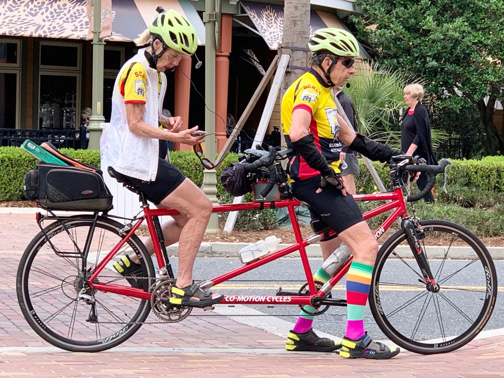 I was amazed at a very elderly couple riding a tandem bicycle that stopped directly in front of me to take a cell phone break. See last photo attached. I applaud this couple who are totally serious about fitness. 👍. Enjoy the rest of the photos !!
