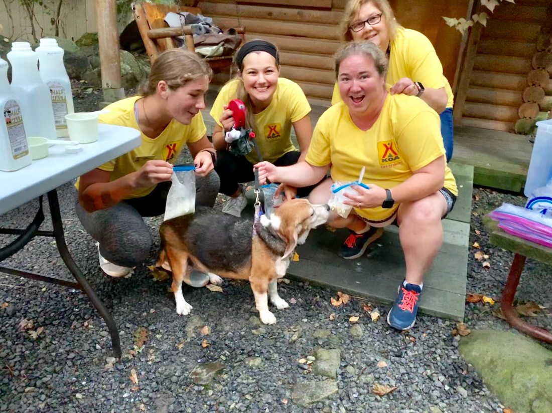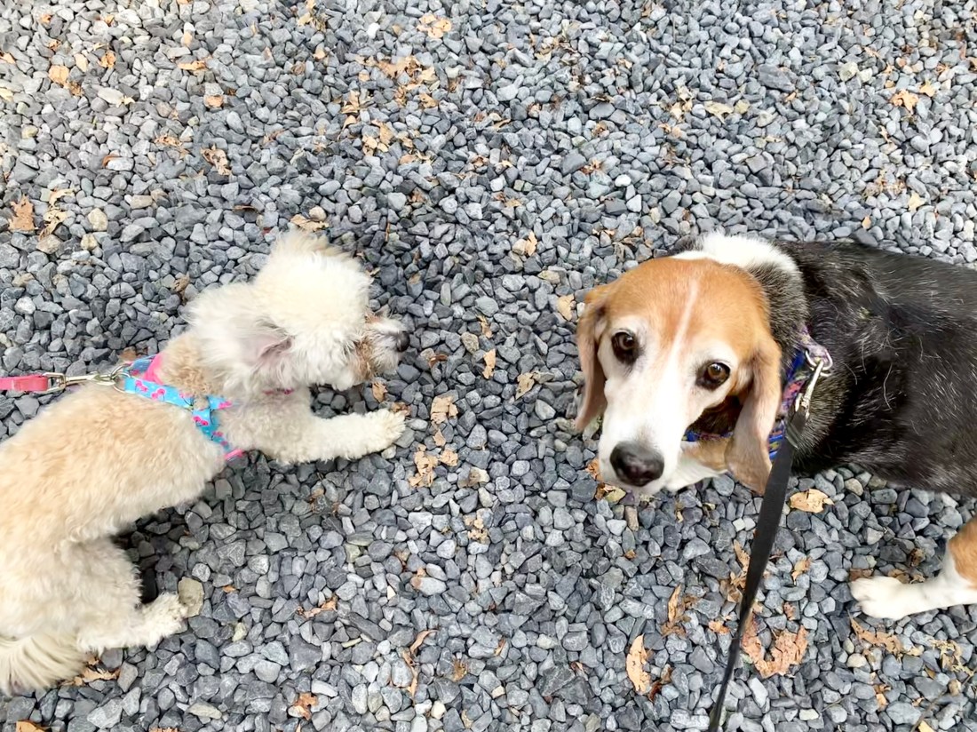 Today Sadie sniffed every inch of the doggie playground, made some new dog friends & made sure she was involved in making ice cream with staffers Millie, Gabby, Jen & owner Lorelle ! Thumbs Up !! πππΎ
