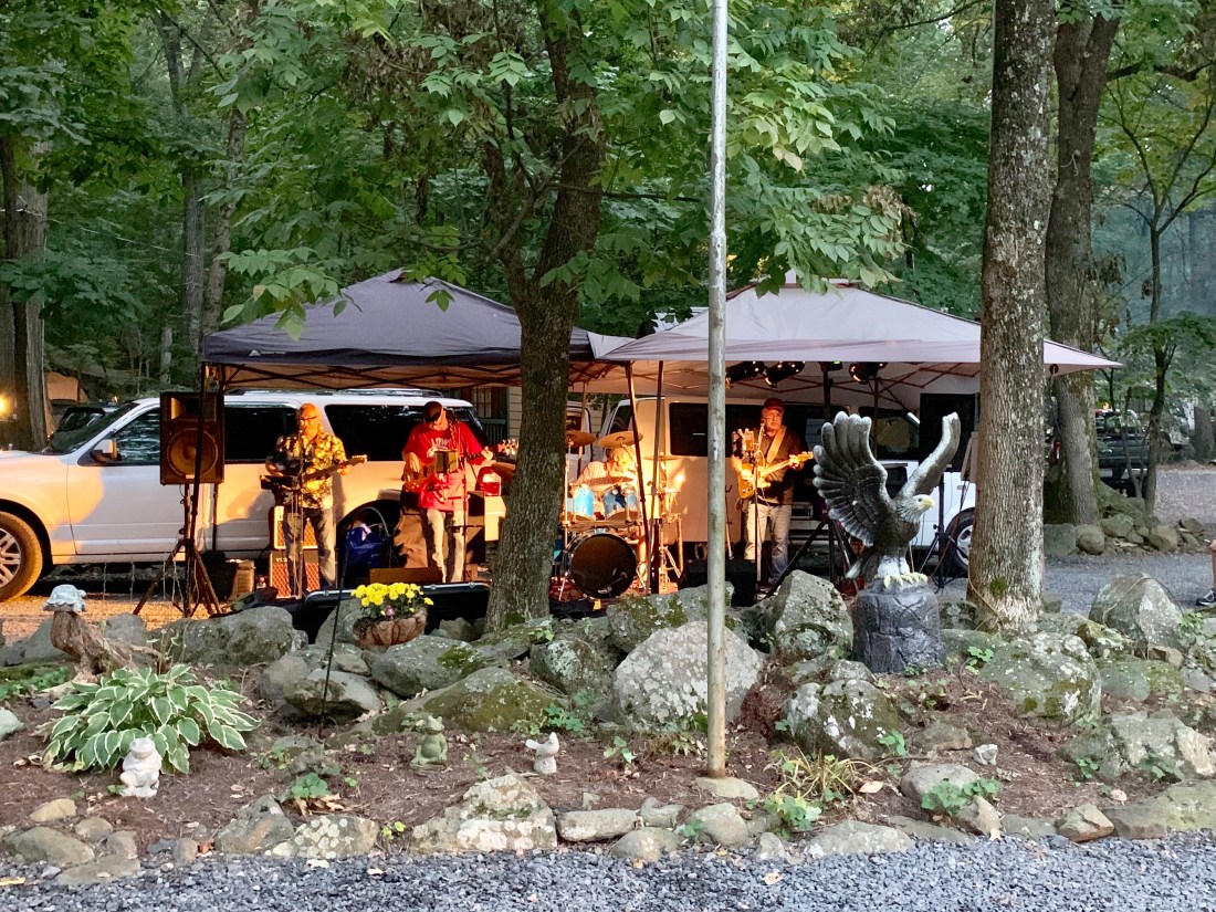 There is no shortage of activities at this campground ! Activities for both children & adults ! There’s assorted crafts, scavenger hunt, make your own rocket launcher, make your own patriotic windcatcher, tie dye your own shirt, create ice cream in a plastic baggie by shaking it with ice & salt and the finale tonight was dancing to the beat of a local band ! What an engaging, fun place !!