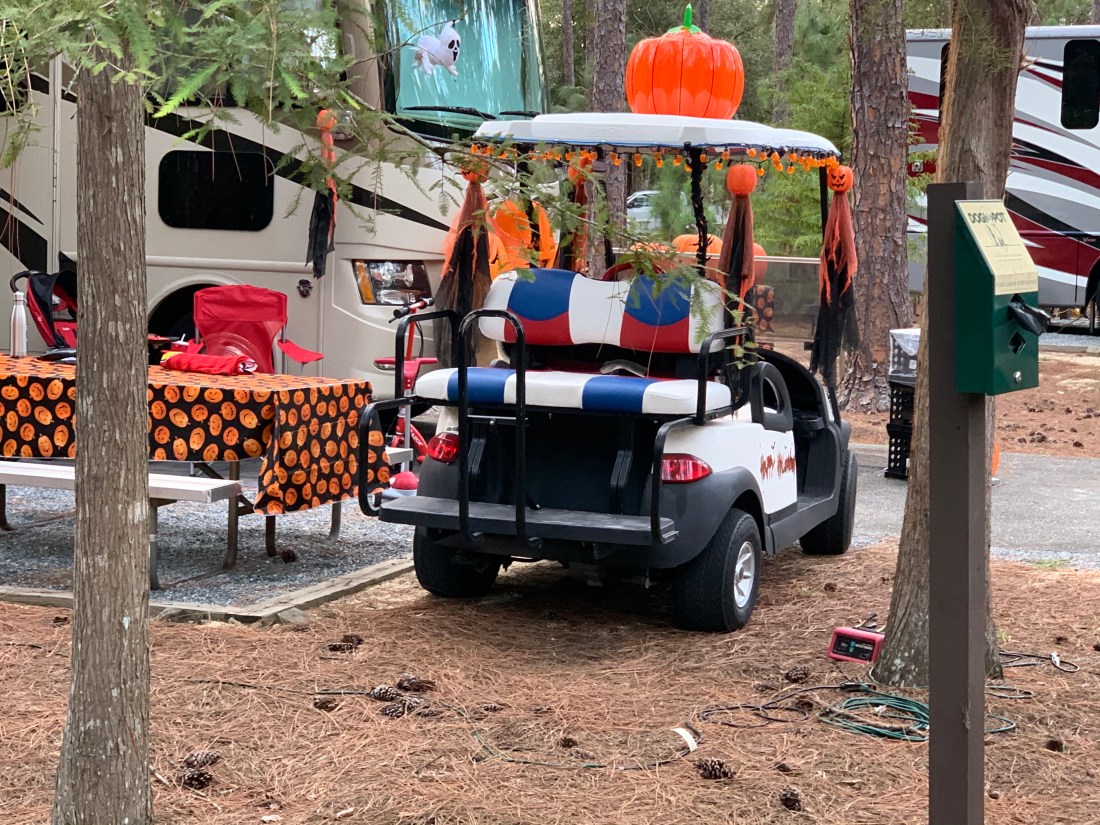 Folks really go all out with Halloween decorations on their site & golf carts … lots of skeletons driving RVs & golf carts around the resort (just a few examples below) !πŸ‘»β˜ οΈπŸŽƒ