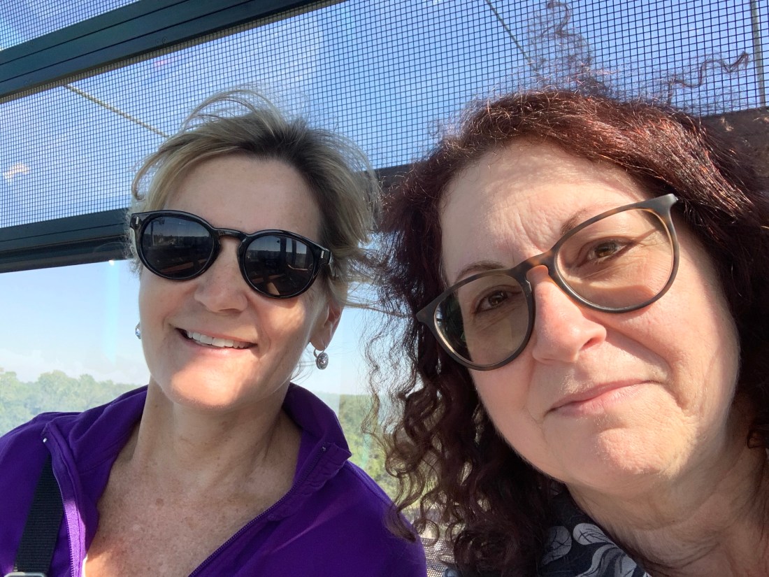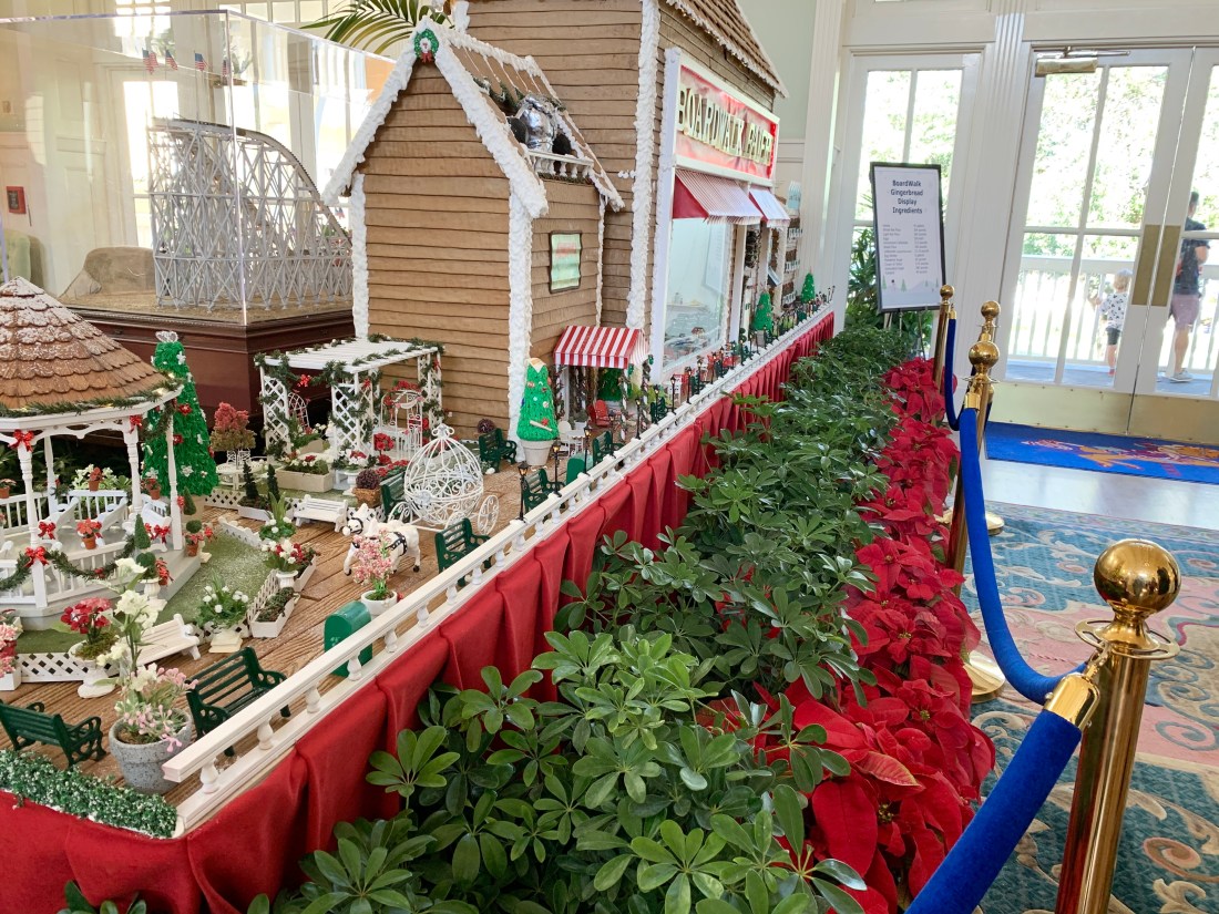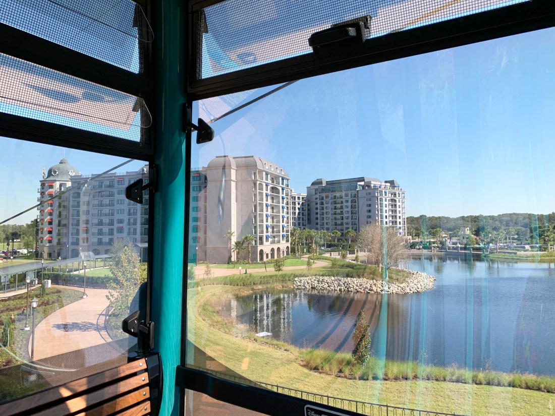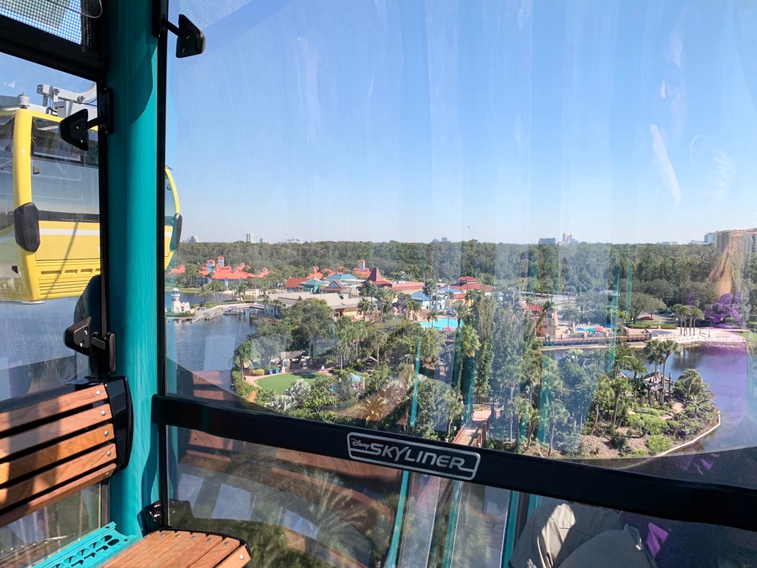 We walked back to the car & headed to Disney Boardwalk where we toured the hotel lobby, saw an incredible gingerbread house & window shopped in the many stores that are located on the boardwalk. We continued walking & made our way to the Skyliner near Hollywood Studios. We boarded the aerial gondola & began our 60 foot high journey ‘flying’ 11mph over highways & the Swan & Dolphin, the Yacht Club, the Caribbean Beach & Riviera Resorts.