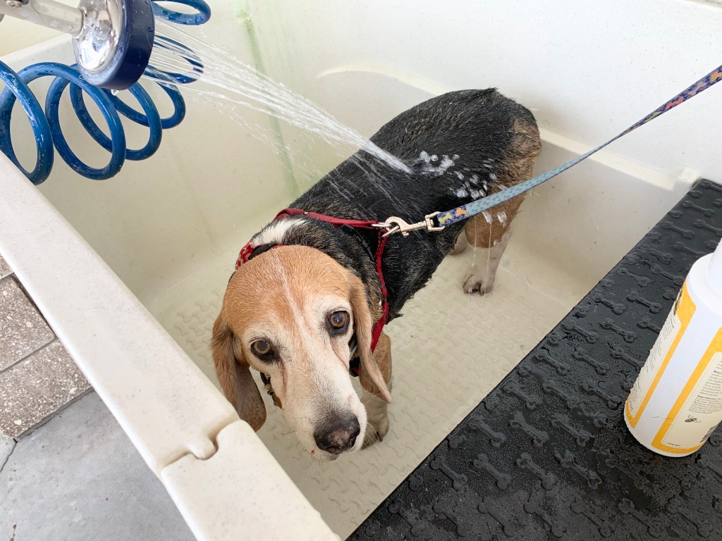 Yesterday I treated Sadie to a trip to a pet store ! Sadie is slick when it comes to taking her antibiotics or any pill for that matter … I tried to hide them in her yogurt, she ate everything except the pills !! This park has around 8 dog wash stations, so guess what … Miss Sadie had a bath … she hates getting wet ! Enjoy the attached Sadie photos. 🐾💖