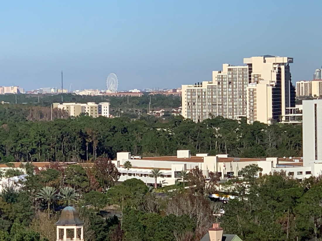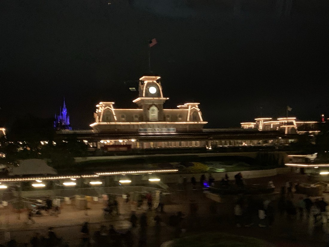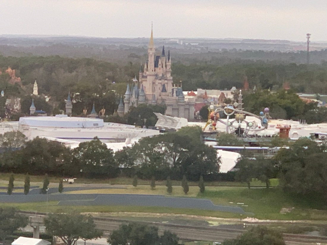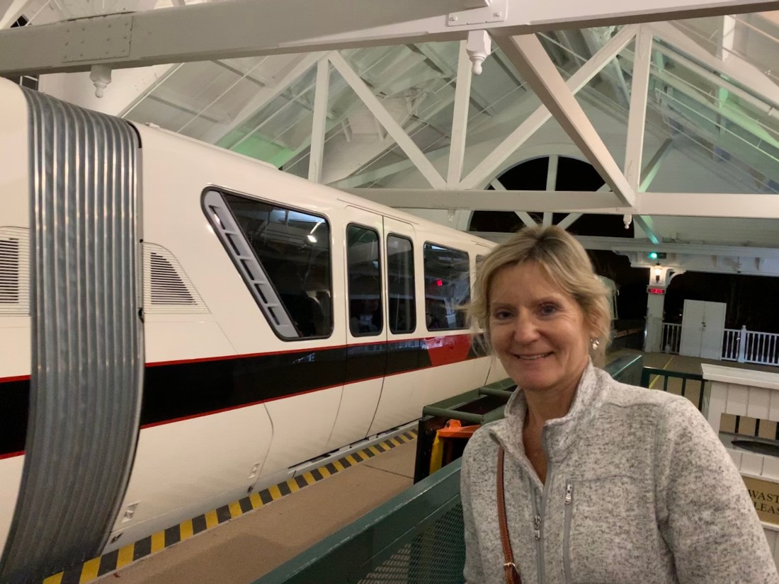 By this time it was 6pm, so we had an hour & a half to shop & explore. Inside the Contemporary shop, Kim found a gorgeous tropical theme top that she purchased. Then, after walking through security screening, we boarded the monorail to explore the lobby of another resort, the Grand Floridian. Their lobby is the mother of all lobby’s … Grandiose indeed !! We then continued our monorail journey & disembarked back at the Contemporary. We got in the elevator line to wait to go to the 15th floor observation deck & guess what … they never did ask for our receipt !! 👍😃