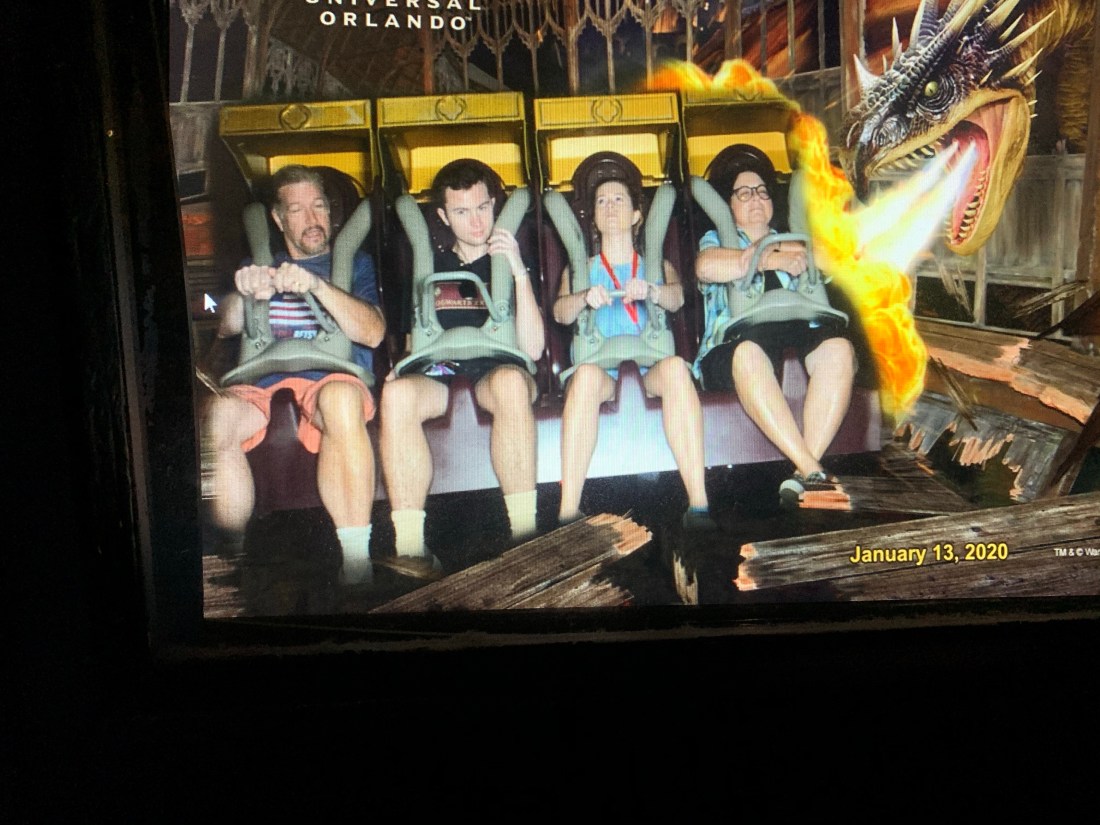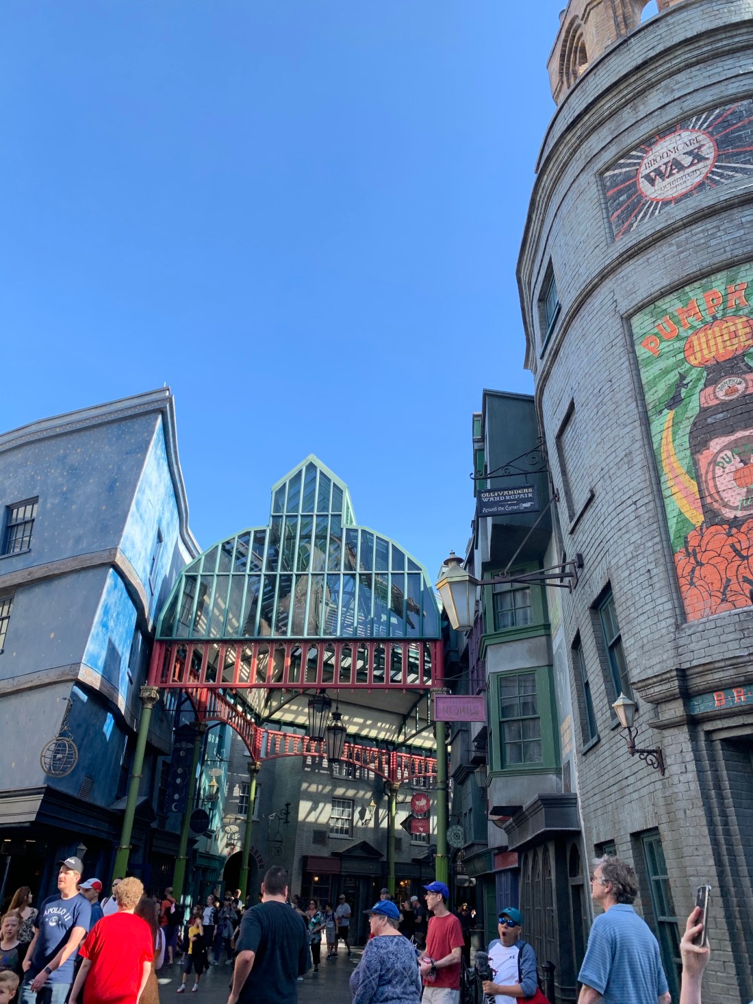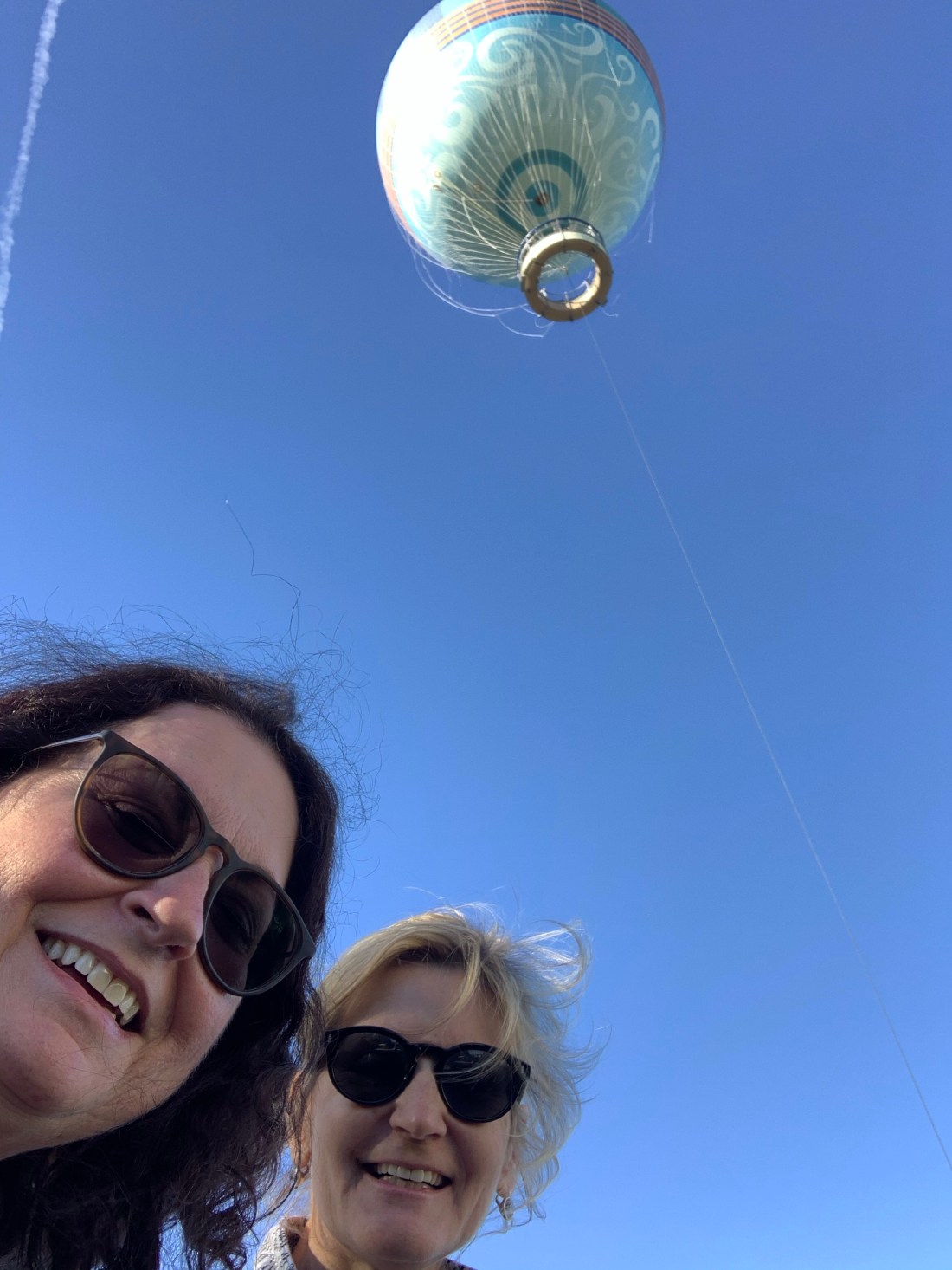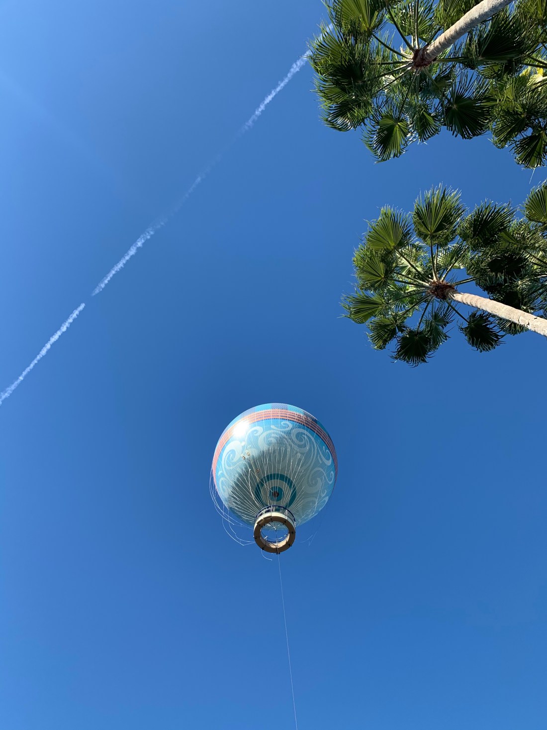 By this time it was 6pm, so we had an hour & a half to shop & explore. Inside the Contemporary shop, Kim found a gorgeous tropical theme top that she purchased. Then, after walking through security screening, we boarded the monorail to explore the lobby of another resort, the Grand Floridian. Their lobby is the mother of all lobby’s … Grandiose indeed !! We then continued our monorail journey & disembarked back at the Contemporary. We got in the elevator line to wait to go to the 15th floor observation deck & guess what … they never did ask for our receipt !! 👍😃