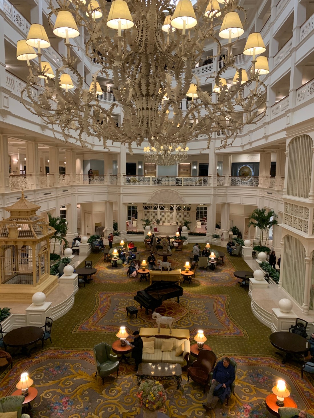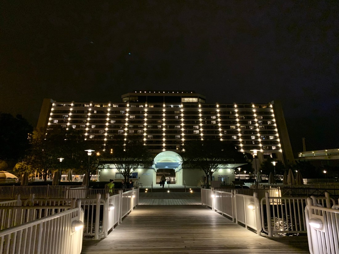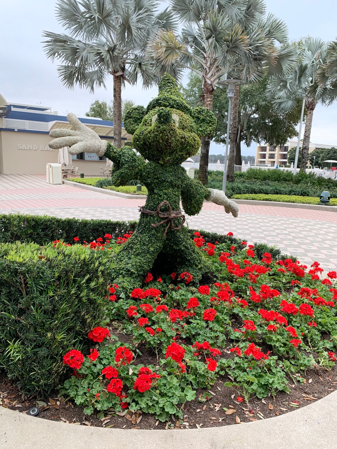 We then came back to the campground, fed Sadie dinner & took her for a long walk in the woods. Then we tucked her in as we headed to the Marina to catch the boat and headed to Disney’s Contemporary Resort. After leaving the boat we were welcomed by a magical Mickey topiary. It’s hard to believe, but the last time I was in the Contemporary Resort was 43 years ago when my aunt took me to Disney in 1977 !!
