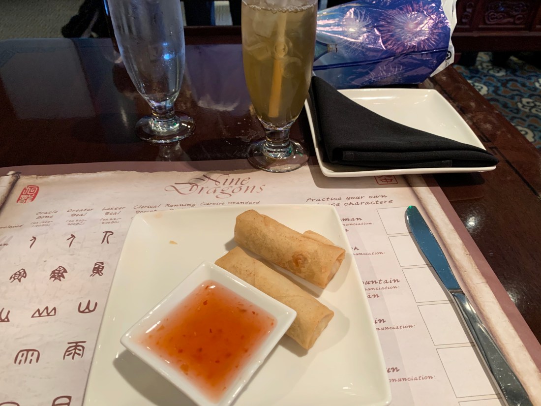 For the next 1.5 hours I continued to stroll & window shop through the other countries on my way to my final destination … lunch reservations at the Nine Dragons Chinese Restaurant. For 9 months, I have been craving a good Chinese meal and finally today that craving was satisfied ! Lunch was outstanding & very reasonably priced ! YUM !